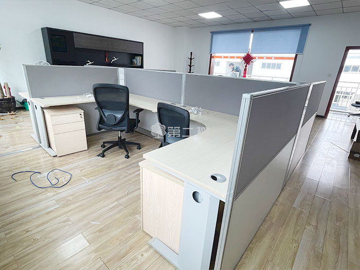 2026年3月19日,第二树成都公司团队按约定时间准时完成所有家具的配送与安装工作。此次采购的家具包括科誉L型二手办公桌、员工二手办公椅以及桌下木质二手推柜。科誉L型办公桌采用经典的L型设计,台面空间宽敞,主副台分区明确,既为技术人员提供了足够的工作面,又方便摆放图纸、设备及日常办公用品,整体材质扎实,结构稳固;员工二手办公椅注重人体工学支撑,透气网布与可调节腰托相结合,有效缓解长时间研发工作的疲劳感;桌下木质二手推柜则采用实木贴皮材质,纹理自然,体积紧凑,便于员工分类存放资料与个人物品,与L型桌搭配使用,进一步提升了工位的收纳效率与整体美感。