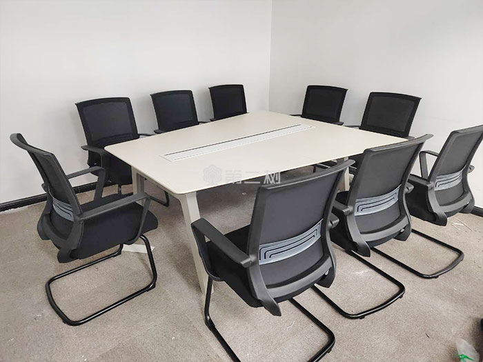 此次项目位于重庆,一共采购了100多件二手办公家具产品,员工区选择了高屏风二手办公桌搭配黑色网布办公椅,会议区选择了白色会议桌搭配黑色二手弓形椅。